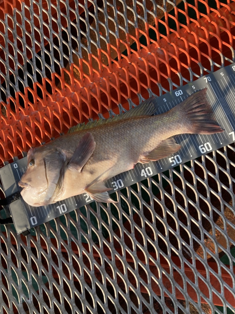 ムール貝のブッ込みで良型のコブダイ。