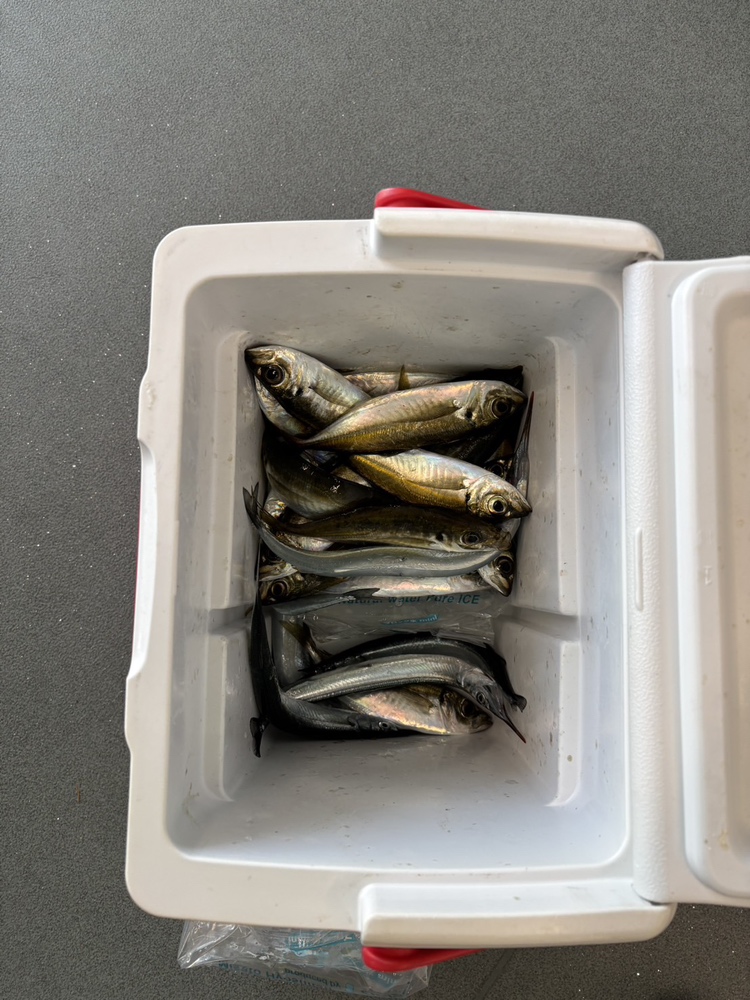 朝から西釣台や北釣台でサヨリが、昼からは南釣台で小アジが釣れていました。