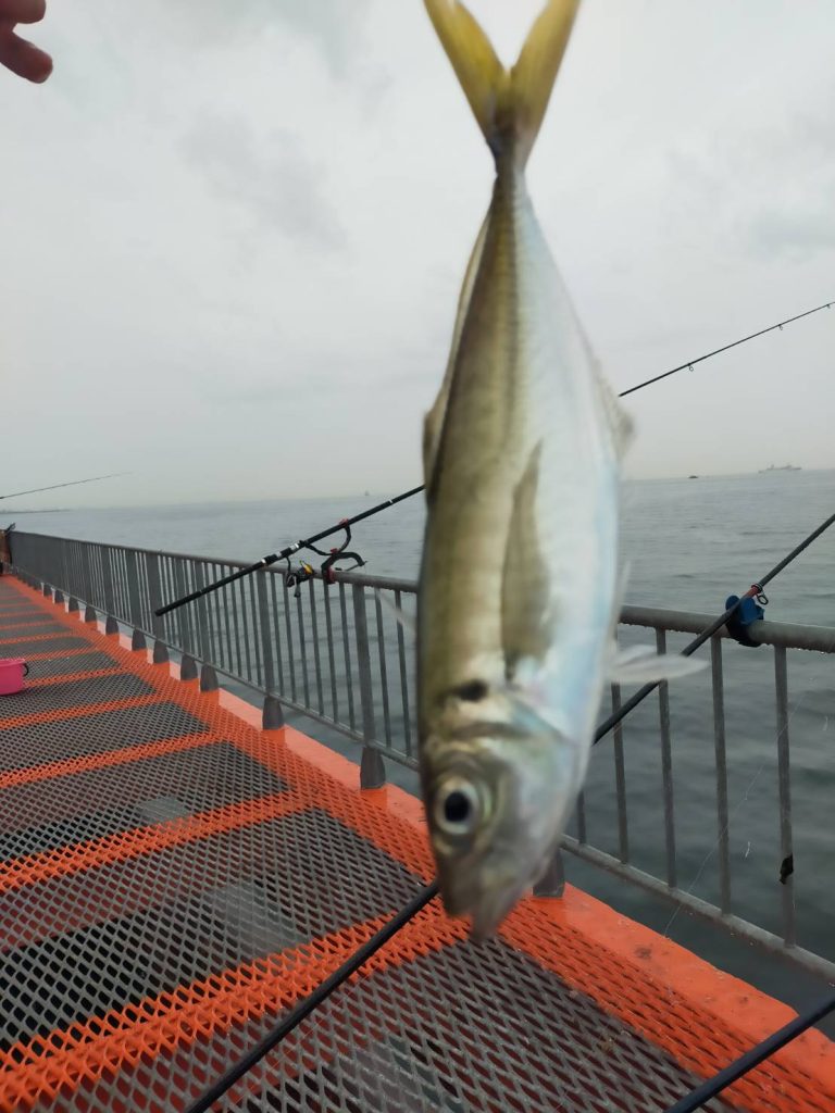午前中にご来園されたお客様がサビキ釣りでアジ、オキアミのカゴ釣りと落とし込みで
